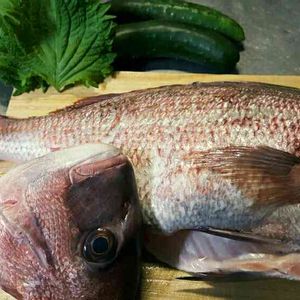 瀬戸内ものの鯛と庭先の大葉と初収穫のキュウリ♪ 鯛はお刺身とお澄ましにします。 キュウリはとりあえず叩いて辛味噌和えかなー。 お澄ましに入れる三つ葉は自生してるので火をかけてる間に採ってこなきゃ。
