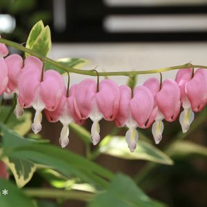 ケマンソウ(タイツリソウ) 前回の写真は夕方な撮影した花のアップでしたが、今回は少しアングルを変えて投稿せて頂きます💕 一列にお行儀よく並んだ姿が可愛い💕💕 マイガーデンのタイツリソウ。