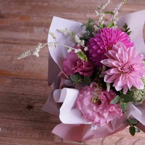 お誕生日のプレゼント用に、お花屋さんでブーケを作っていただきました♡ たくさんの感謝を込めて· · · ダリア リシアンサス レースフラワー シルバーキャット ユーカリ