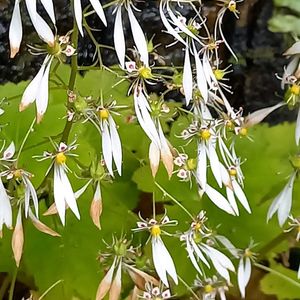 1枚目はジンジソウ。 2枚目は、上がジンジソウで、下がダイモンジソウ。 ジンジソウとダイモンジソウの主な違いは、花弁の形と花弁の模様だそうです。ダイモンジソウの花は「大」の字のように見え、花弁に斑点がないものが多いのに対し、ジンジソウの花は「人」の字のように見え、上部の3枚の花弁に黄色の斑点があるのが特徴だそうですよ。 2つの花を同じ日に見たのは初めてでした。人と大の違いがよく分かりました。2つともユキノシタ科ユキノシタ属。春に咲くユキノシタの花とよく似ていますね。