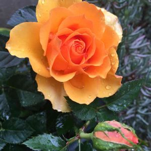 朝は霜が降りたのに、ミニバラが咲いてきました‼️ すっかり曇って、陽がささず寒い1日になりそうですが、 一花ビタミンカラーが咲いて、寒さに負けるなと、、🧡