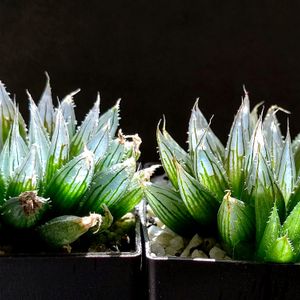 まだカクタスニシさんの戦利品個別紹介が終わってないにも関わらず、どうしても投稿したいものが😍💖 北の大地より、超絶素敵便が届きました❗😍💖💖💖 僕がハオ収集するにあたって、ある意味、最終目標と言っても過言では無いと思っていた 🌱ブラックオブツーサ錦🌱 と、素敵なハオ3種を頂いてしまいました😍😖💖🤩 一番奥が 💖ブラックオブツーサ錦💖 左は 🌱タイガーピグ錦🌱 右は 🌱ダヴィディ🌱 手前は 🌱パープルレンズ🌱 です😆🎵🎵 どれも素敵過ぎて、テンションMAXです🥰 本日届いて、帰宅してから、仕事の疲れもふっ飛び、早速植え替えしました‼️💖 このために、用意した鉢も、なかなか似合ってて、大満足です❗💖 ケンさん、本当にありがとうございました❗😍💖 大事に育てます❗😖😖😖
