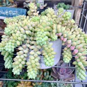 仕立てなおした多肉寄せ植えさんのグリネさんが長すぎる写真切れてるけど、もっと長いの(・∀・) 隣のドルフィンネックレスも長いからいい勝負だね( ´艸`)