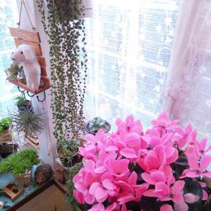 窓辺の風景✨ シクラメンさん❤️まだまだ元気にお花を咲かせています✨ グリネさんも長さを更新中(笑)✨