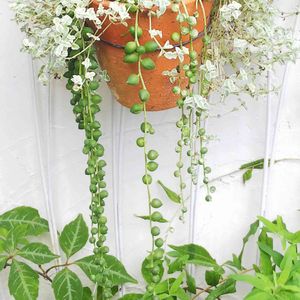 この場所で梅雨も夏も乗り越えたリトルミッシーさん🌿とネックレスさんたち💚 長く伸びて、もさもさで可愛いです🥰 ミッシーさんの枯れ葉を取ってあげないとね😅