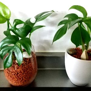 今日のお花モンステラ😊 これは姫モンステラ👸でミニですが水に差しておくだけで根が出てくれるのですぐ増えます😆 この二鉢はお嫁に行きました👰🥰