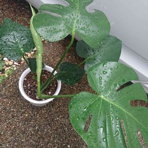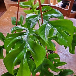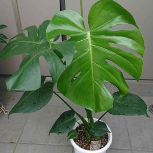 モンステラ アダン・ソニー🎵 大きな新葉 😲💦💦 タテ37 ヨコ30cm アダン・ソニーは小型品種では❔😶。。。 あまりの大きさに 添え木しないと倒れてしまう。。。😰 苗札🏷️の間違いでは❔。。。🤔
