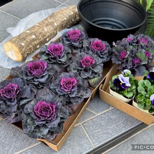 冬のお楽しみ ひとつ、またひとつと枯れて冬支度に入る庭の植物たち そんな景色も良いのだけれど、冬だからこその華やかさもね✨ 葉牡丹 種類がすごく増えましたね 色味も葉芸も大きさもたくさんあって までも迷わずこれ一択で 最近お洒落ビオラに押され気味なパンジーたち 何年ぶりかな、花いっぱいのひと鉢にしよ 濃紫に薄色ふりふりエレガント💜 はい、そして原木栽培しいたけも🍄🟫✨ 今度こそは! #リベンジ #迷える原木栽培 #焼いてジュワッとに塩振り🍺🎶