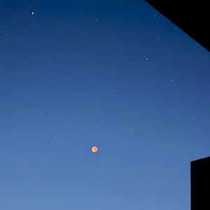 今宵の月、ブラッドムーン 2025年9月8日 3:19 昨日の陽が落ちた頃、東の低い空に大きな丸いお月さま🌕 綺麗だなと家の前で眺めていたらお隣の奥さまも出ていらして 夜明けの前に空を見て😊皆既月食の赤い月が見られるわよと 知らなかった、でも起きられるかな 星瞬く夜空に浮かび上がる皆既月食の赤い月 見られました🤗いい事ありそな #BloodMoon #血色の月