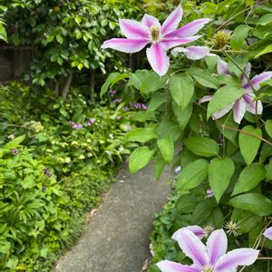 イソギクの挿し木🌿 上手いこと着いたら濡れ縁の下一面に低く広げたいなあと いつもこの狭い庭の中央に置いてある古ぼけたプラチェアー 雨も光も少しだけ通すこの椅子の下はなかなかいい感じの場所となり 今はテッセン満開で座れないけどー この感じも綺麗よね これら全てお気に入り😊 #お庭大好き #マイガーデン #落ち着く場所