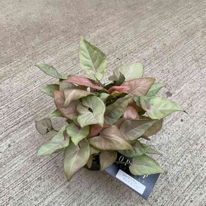 シンゴニウムミニマ( ピンク ) . 淡いピンク色が可愛いコンパクトサイズのシンゴニウム💕 寒さに弱いので暖かいお部屋の中で管理してあげて下さいね♩ このサイズ感はあまり無いのでお店でもとても人気な植物です🍃