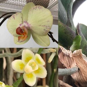 胡蝶蘭 キロスキスタヴィリディフラバ 胡蝶蘭は、だいぶ色が薄くなって黄色っぽく。 この子開花中ですが、新しい花芽らしきものが⁉️ キロスキスタ アップです^ - ^甘い香りがします。 どちらも、好きなカラーです❣️