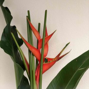 ヘリコニア-ストリクタ 今朝の自宅にて咲くヘリコニアで す。ヘリコニア属は熱帯アメリカや 熱帯地域🌴に100〜200種が分布 する。ヘリコニアはギリシャ神話に 登場する芸術の女神ミューズが住む ヘリコーン山に因む。花序は苞が重 なるように2列生し苞の中に淡緑色 の花を付けます。(*´-`)❣️