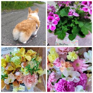花とワンコとうさぎ年友さんがチャッピーにお花を持ってきてくれました💕嬉しいな🎶 🌈からワンワン祭りに参加します
