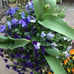 真上からで見辛いですけど🙀💦💦 ビオラ・パンジー・チューリップの寄せ植えです🌷✨青みの強いムラサキを3種類使って統一感を😸😸ラミウムも一緒に植えたけどビオラ達が成長し過ぎて埋もれちゃいました😂⭐️⭐️もうすぐでチューリップが咲きそう。。。♪♪
