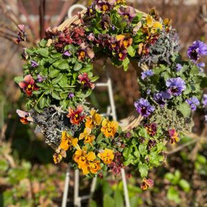 ビオラな季節 セリアの100円籠にペットボトルの底をいれてあちこちに飾ってます 夏より長持ち可愛さ持続してます