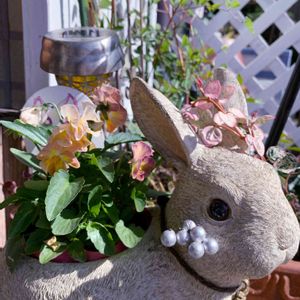 左の木が落葉樹なのでスカスカになった感じがして、フェンスとバスケット、レンガ風発泡スチロールプランターを追加してみました😃 右の寄せ植えはジュリアンです💠✨ 久々にD2に行ったら入荷していたので、早速お迎え❗️ あと左のブラキカムとビオラはジョイフルで😁 ヒューケラの間に植えたディコンドラはどんどん成長してきました🍃 ちょっとは明るくなったかしら🎵