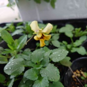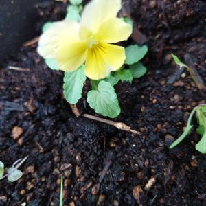 昨日 ビオラを植えました イエロー系の ちょっとおしゃれな子 ビオラ花言葉「誠実」「信頼」「もの想い」 黄色のビオラ「小さな幸福」