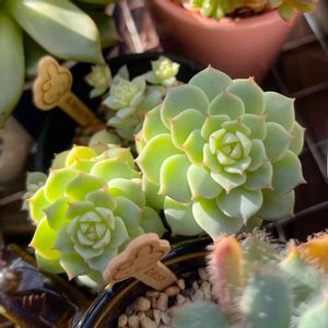 置き場所の事を何も考えずに集め過ぎた多肉達。 冬越しは室内かハウスに入れた方がいいらしいけど、とにかく置き場所がない。。寄植えにして鉢数を減らす事にした。 都内も今日から一気に寒くなるらしいから急いで鉢数を減らして避難させないと!❄ 名札取ってしまうので備忘録。 静夜、ジョイズドロップ、ブルーエルフ グリムワン、シルエット