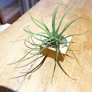 チランジア・ ポリスタキア Tillandsia polystachia 階段の窓辺で管理していたら少し調子を崩してしまったポリスタキア。色艶とハリをなくしてしまい、少し黄緑色に。やはりこの子は水を好みますね。お風呂場では葉っぱを全開にひろげて調子良さそうに見えます。 根っこ生えないから活着できないでいるのだけど、タンクタイプのような鉢管理の方が良いのかな〜🤔 鉢植えは場所とるし、エアプランツぽくないし、猫ちゃん🐈がいたずらするしで、あんまり好きじゃないけど仕方がありませんw 開花期に全体が真っ赤になるという報告もあるので、それまでは鉢管理にして、葉数の多い美しい草姿に仕立て上げたいと思います😊