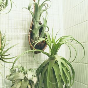 反対側の壁は主にチランジアたちをぶらさげています。水やりの頻度もチラさんたちの方が多いのと、ほんの少しの変化もすぐ近くで見て確認できるので、こちら側に配置しました。 同じく補強工事、塗装工事を実施、苦労した点はワイヤーメッシュを手すり角度に合わせてカットしたところです。サンダーで火花散らしながらやっとこさ切りましたw(๑˃̵ᴗ˂̵)