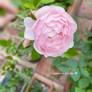 今朝の”シャンタルトーマス "さん🌹 挿し木2番が開花しました¨̮♡︎¨̮♡︎ 本来の巻き巻きが少ないですが… このまま元気に育って欲しいなぁ୧⍢⃝︎୨ (なかなか難しいバラさんです*´-`)