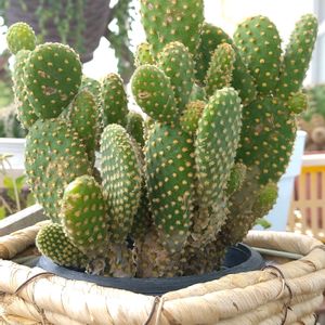 キンエボシ金鳥帽子Opuntia microdasys みなさんがお花を咲かせているのが気になり、DAISOさんでつい手に取ってしまい😅1ヶ月程経ちました☺️ ポリポットに入っていたので有り物のプラ鉢に有り物の培養土を足して植え替え、植え替え時にポロッと取れた子株を空いてる所に差してみました 今の所レースカーテン越しの窓辺で過ごしています😌新たに生えてきた新芽も大きくなってきました
