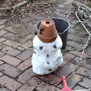 朝起きたらうっすら❄️ 遊びに来てた孫が大喜び姉弟で公園まで行ってかき集めて帰ってきた なかなかセンスの良い雪ダルマさんを作ってた