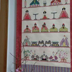30数年前に作ったお雛様染みも沢山だし、黄ばんできてる 洗って仕立て直したい 菜の花なかったので アスパラ菜、飾ってから食べよう🎵