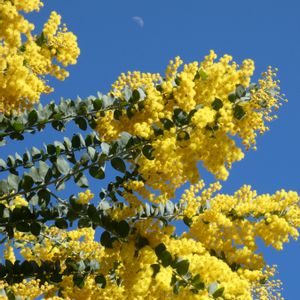 ショッピングモールの植え込み、パート3。何か分からずにpicをためらっていましたが、何かを教えて頂きました。三角葉アカシア(ミモザ)です。アカシアの中でもユニークな三角葉で人気の品種、黄色の小さな花がいっぱい咲きます。 (mozoワンダーシティ)