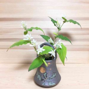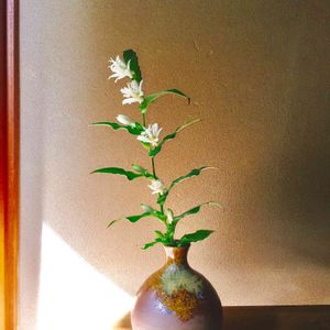 日本庭園の中庭にたたずむ白い花❓️🤔