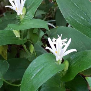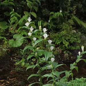 庭の白杜鵑草🕊 柔らかな葉も可愛いです(╹◡╹)