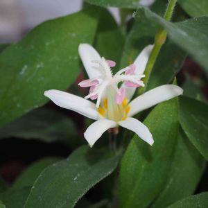 2018.12.7 京橋にて まさか街中で、それも白いホトトギスに出会えるとは思いませんでした。ホトトギスの形だけど初めて見た色なので、何だろうと観察していたら、通りがかりの方が教えて下さいました。 力強さはありませんが、なんだか品があって、都会的な雰囲気を持ってますね。