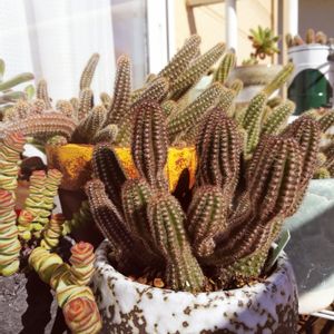 日当たりが良いほど✨モケモケが増す✨「幻楽」ベビーちゃん育てています❤♬ はじめは、みんな2㌢ぐらいのチビちゃんでした😊✨ 小さいうち…根がはるまでの水やりが、ちょっと難しいかな?💦 でも…何とか、育ってくれているようです❤✨ 幻楽だけの寄せ植えも好きです❣✨
