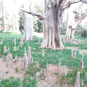 落羽松の気根。 秋になると枝が鳥の羽のように落葉することから、ついたそうです。命名した人はなんてロマンチストなんでしょう! 気根は酸素を取り入れる働きをするそうです。
