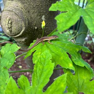 『ゴーヤ』と『カナヘビ』 可愛い🦎