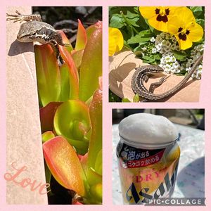 I love はちゅ🏷参加しまーす❣️ 昨日の大雨で草むらに避難していたと 思われるカナヘビくんが朝、日光浴しに 外へ出てきました😍🦎☀️ 今日は暑いくらいの日差しで 外で🍺飲みながらのタニパトー(*´罒`*) この缶ビール、開けると泡がモコモコに 出てくるやつ╰(´ิ∀´ิ)╯ 生ビール飲んでる気分になってサイコー👍 飲みすぎ注意だわー😅🌀