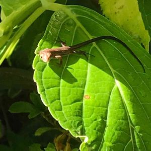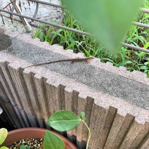 バッタの大繁殖に悩まされている我が家ですが。カナヘビさんが住み着いてくれました😊 去年の子より小さいので違う個体かと思われますが。 頑張ってバッタを退治しておくれ〜!