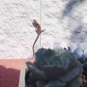 . このカナヘビちゃん つぶらな瞳がかわいくて 話しかけるとずっと聞いててくれます 私が庭で多肉ごとをしてる間、ずっといてくれます かわいい 害虫も食べてね