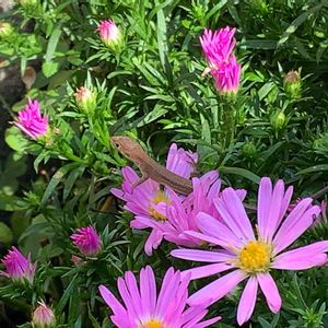 アスター の蕾の中で、カナヘビの赤ちゃんが日光浴中!可愛い❤️❤️