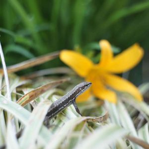 めっちゃかわゆい子見っけ💕 気付いたら投稿100枚目✨ なのに、お花じゃなくてカナヘビくんという🤣