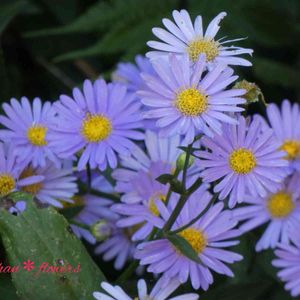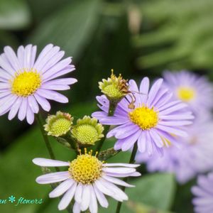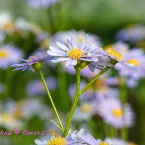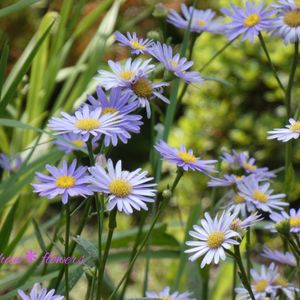 【No308 宿根アスター】 季節の変わり目で、ちょっと疲れが出ました。宿根アスターの爽やかな姿に癒されています。 孔雀アスターとか、孔雀草、孔雀菊など、とも呼ばれています。孔雀は、一つの枝に花が連なる姿が羽根を広げている孔雀に例えたものです。キダチノコンギク(木立紺菊)などとも。 種類もいっぱいです。我が家では、紫と白が咲いています。 花言葉「いつもご機嫌」は、枝分かれした小花が秋の風に揺れる姿から。 「飾り気のない人」は、優しく可憐な花が秋の野菊を思わせるから。 「思い出」「友情」「可憐」「一目惚れ」などもあります。 秋は確実に近づいていますね。