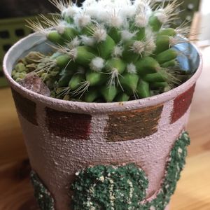 これは!ツボミ? 2年目で初めてお目にかかります😄 直径、約8.5cm 皆様のお知恵をお借りして、 名前が分かりました。 エルサム、ブカレン、ブカレンシス、 ブカレンシス エルサム、 ブカレリエンシス エルサム。 サボテンも沢山種類があって、 面白いですね😉