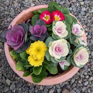 葉牡丹とジュリアンを寄植えしてみました (*ฅ́˘ฅ̀*)♡