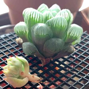 🌱ハオルチア属 オブツーサ🌱 旦那のオブ。 緑→紫 …変色😭💦 土→水栽培 …緑に復活😆‼️ 土に戻すべく乾燥中です。 🌱エケベリア属 静夜🌱 根腐れから救出中。このコも復活できますように🙏