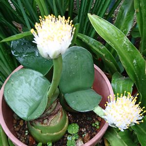 こんにちは(. ❛ ᴗ ❛.) 大好きなマユハケオモト 綺麗にひらきました💞 お子さまもいっぱい増えて、植え替えしなきゃあね🤗