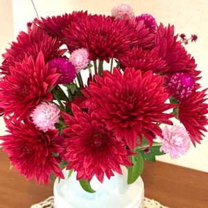 おはようございます☀ 今年も ポットマム ダンテ 鮮やかに咲いてくれています。もう4年目になります。 この季節 鮮やかな赤がとっても映えますね。今日 母に持って行こうと思います😊