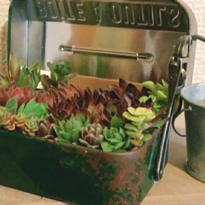 工具箱寄せ~🛠 でもチビチビ工具箱なんです(*^^*) 人気な工具箱と知りやってみたくて~💕 チビチビセンペルの赤ちゃんで寄せ植えしました🍀 こんなにギュウギュウでいいのかな?(^-^;) それと、モンキーを接着剤で止めているのですぐ外れちゃいます💦 どうしようかな~。 今は麻紐で抑えて結んでみました(笑) ジャンク系なんだかナチュラル系なんだか……… (//∇//)ワカラナイ