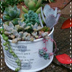 この前、初ネット狩したメモリアルセット✨ 寄せ植えしました~💞 盛り沢山の韓国苗⭐ 贅沢な一品が出来上がり(//∇//)💕タマラナイ♬ もっとみなさんのようにモリモリな3D寄せにしたいけど、なかなか………(*_*; 土ばかり足してずっしりとした重量感な鉢になってしまいました💦 でも、可愛い多肉さんのおかげでいい感じかな~🍀 自己満足(^.^)♪