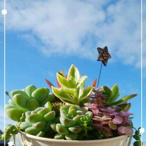 今日の目に止まった子! 初めてお迎えした壁飾りの多肉セットに入っていた子達💕 セットの中では狭くなって植え替えてから2ヶ月半くらいでしょうか。 兎耳?さんも大きくなり、虹の玉は真っ赤、1番気になったのは赤く紅葉して真ん中が、黄色の子✨綺麗だな~🌱 名前が………(^◇^;)教えてください💦あ、金のなる木でしょうか? 回答いただきました! 金のなる木 花月でした💕 ありがとうございます🍀